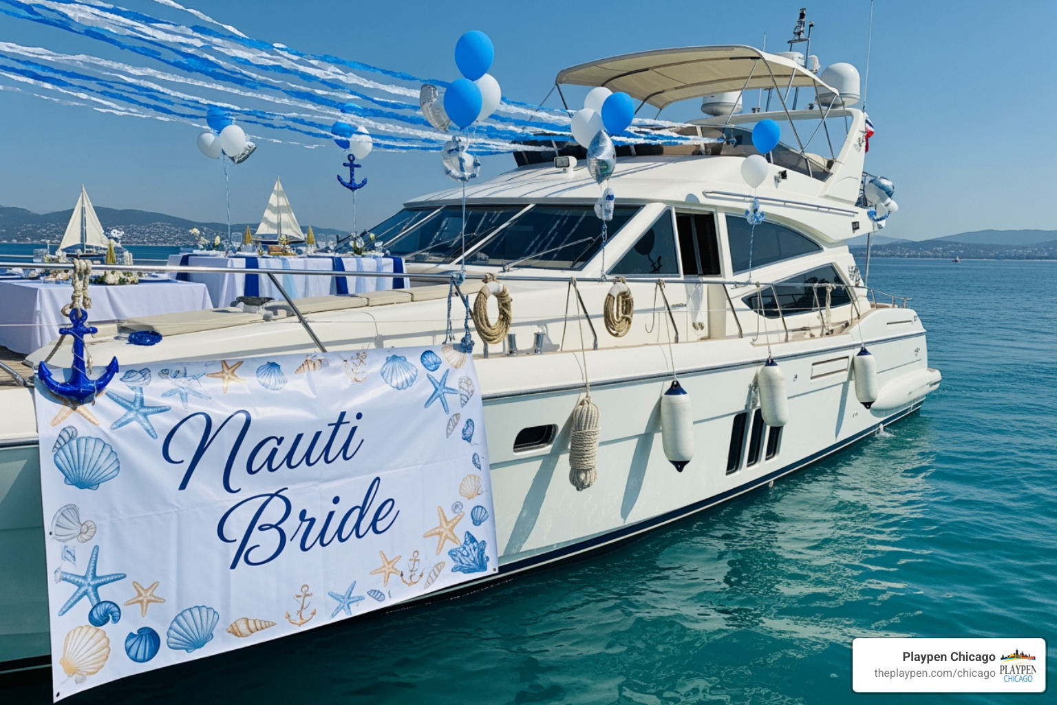 For decorations, use boat-friendly items. Balloon garlands, custom banners, and themed floats are hits. Due to environmental concerns for Lake Michigan, loose balloons, confetti, and glitter are typically prohibited. Party favors like matching sun hats or koozies add a fun, cohesive touch.