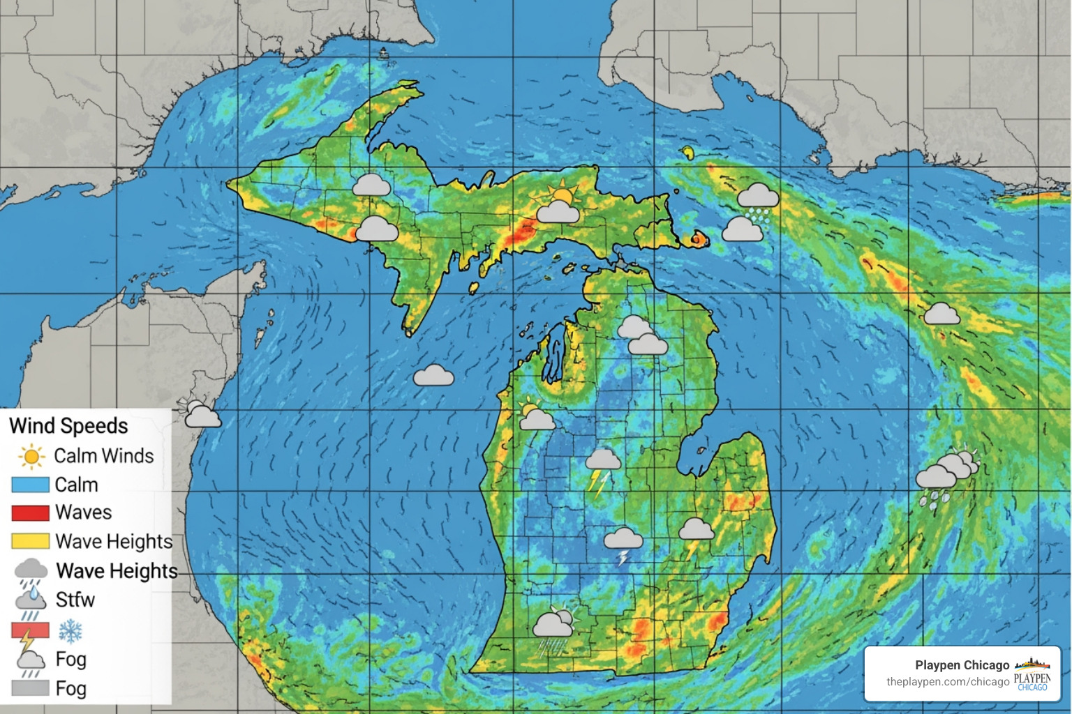 - Hurricane Force Wind Warning: While rare on Lake Michigan, this warning is for sustained surface winds or frequent gusts of 64 knots or greater.