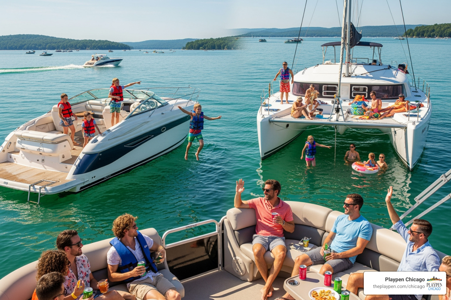 | Pontoon | 8-15 guests | Budget-friendly | Laid-back cruising, swimming, family-friendly |